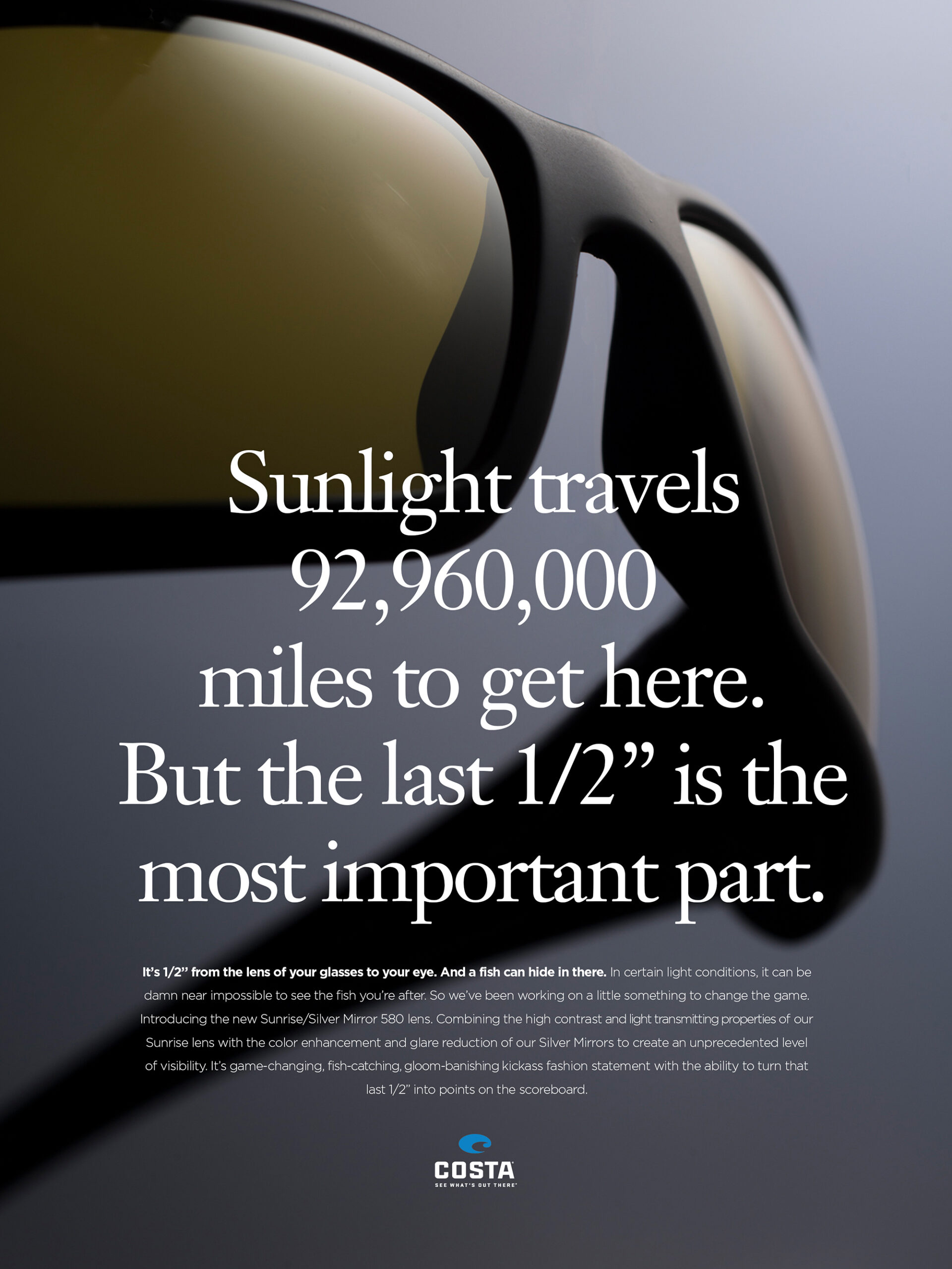 Over the last several years, we have established ourselves as experts on marketing to the extreme vertical niches of the marine and angling enthusiast arenas. And because of this, Costa Del Mar came to us to help them launch their new Sunrise/Silver Mirror 580 lens. A low-light lens specifically designed to help anglers sight more fish in suboptimal condition.
